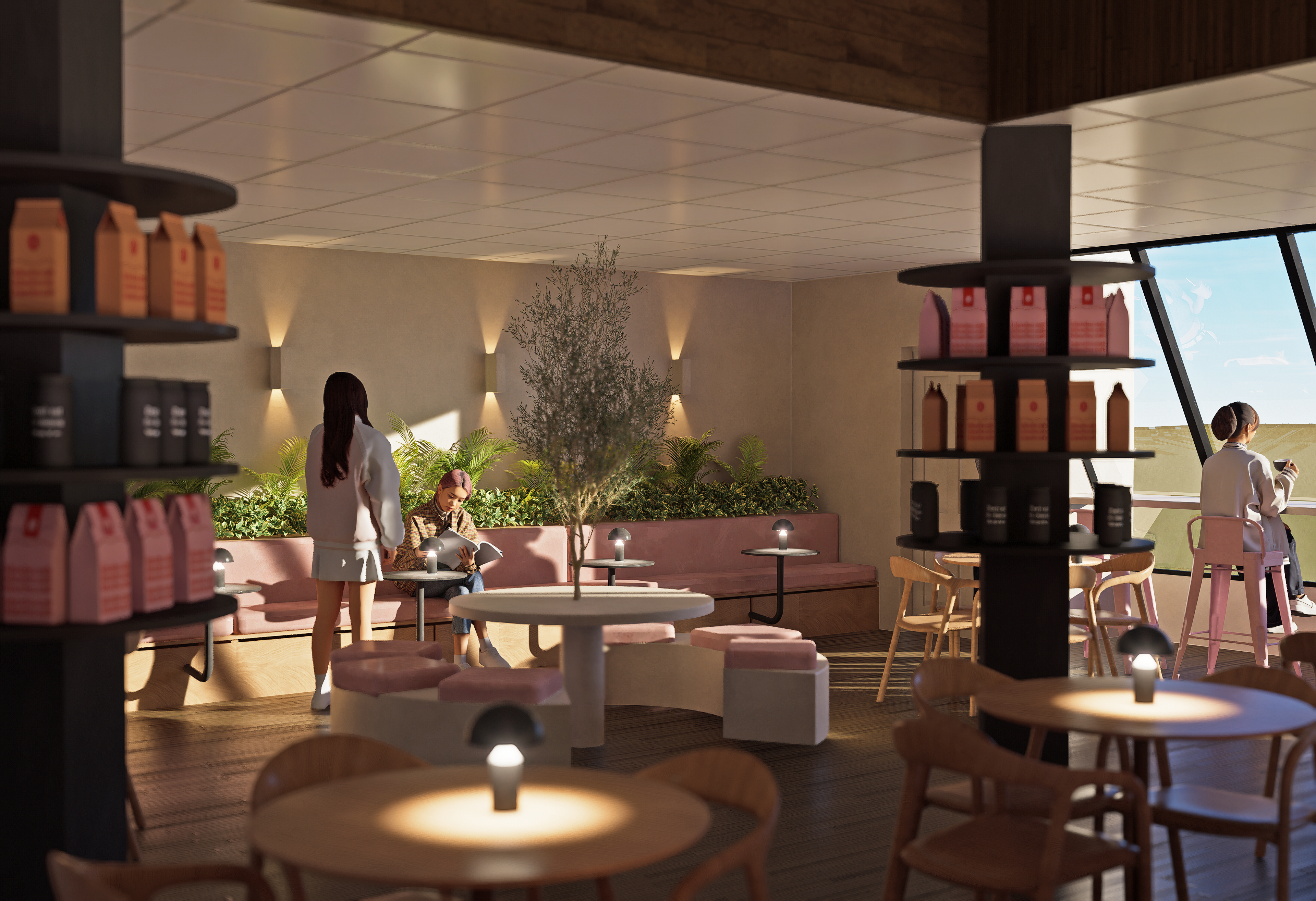 Lo cómodo, lo libre, lo ético y lo directo definen tanto el estilo de la marca como la atmósfera del local. Frente a un presupuesto limitado y la necesidad de preservar la estructura existente, el diseño se construyó desde lo esencial: mobiliario que organiza, luz que guía, materiales que comunican. La paleta de marca rosa empolvado, madera natural, negro y verde oliva da forma a un ambiente cálido, pero con postura.